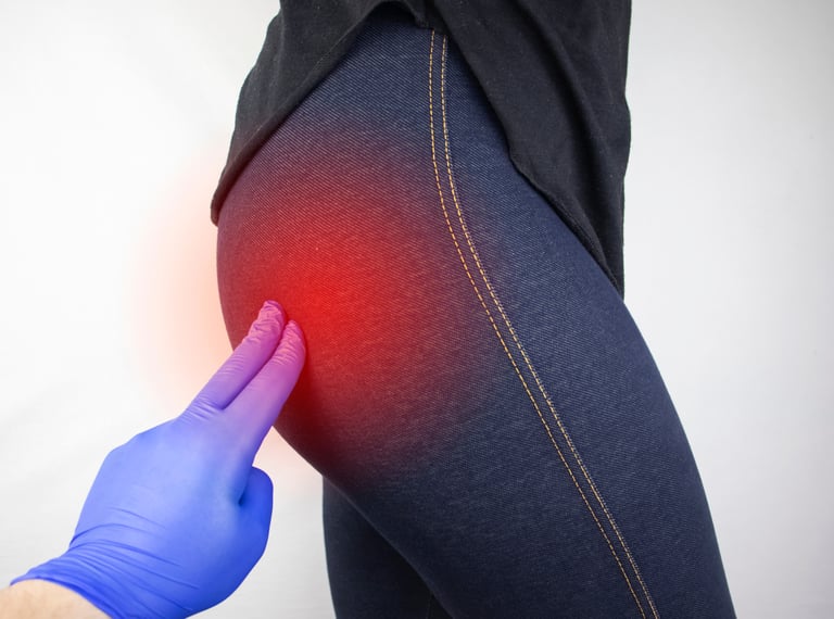 - Dolor en los glúteos que puede irradiar hacia la parte posterior de la pierna.